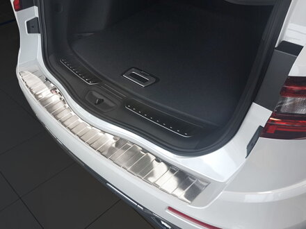 (2/35177)Matný brúsený vzhľad, nerezový kryt na zadný nárazník, chráni nakladaciu hranu, montáž 3M páskou, určená pre nárazník Renault Koleos od 2017